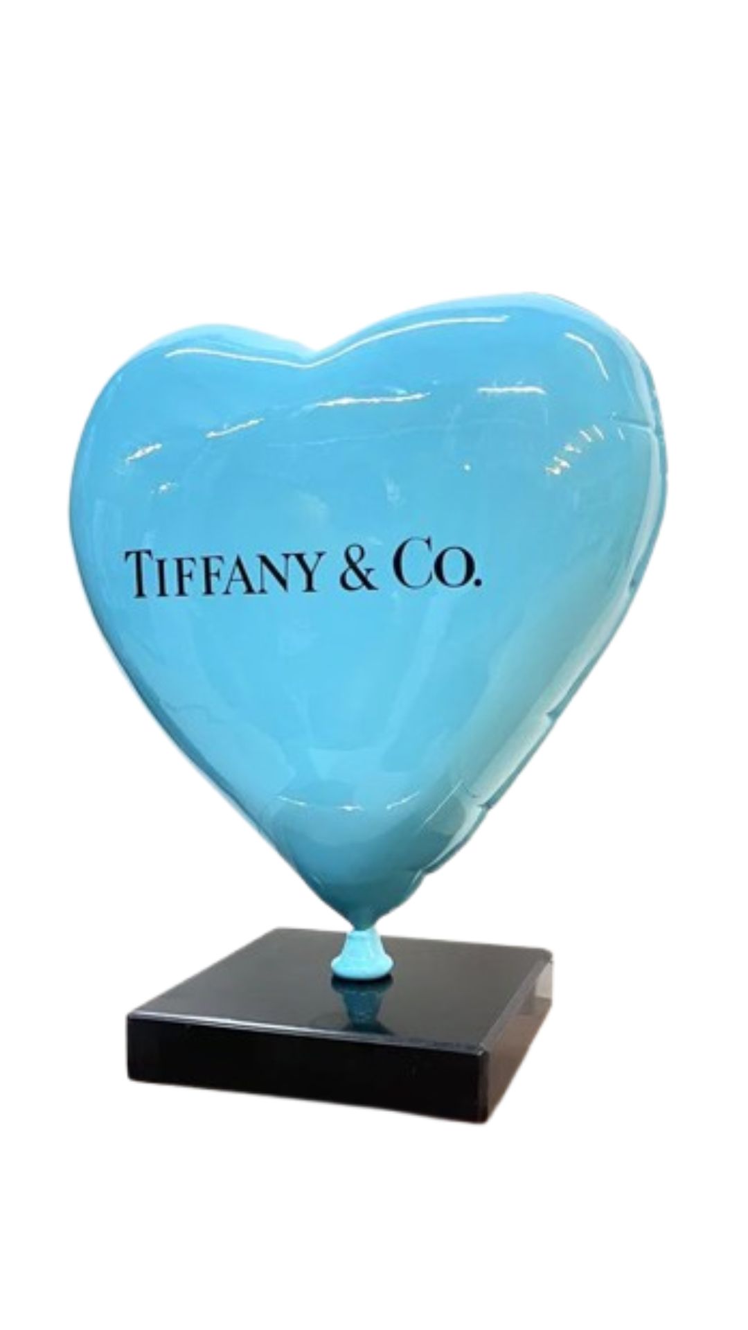 Cuore Tiffany & Co. by Naor Art Design, una lussuosa scultura in resina che reinterpreta l’iconico brand in chiave contemporanea. Il palloncino, alto 30 cm e caratterizzato dall’inconfondibile tonalità blu Tiffany, poggia su una raffinata base nera. Ogni pezzo, dal peso di 3 kg, è accompagnato da certificato di autenticità che ne garantisce l’originalità .