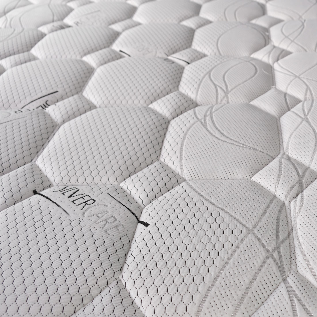 Afrodite è il materasso in memory e molle insacchettate rivestito da tessuto pregiato in trama d'argento.