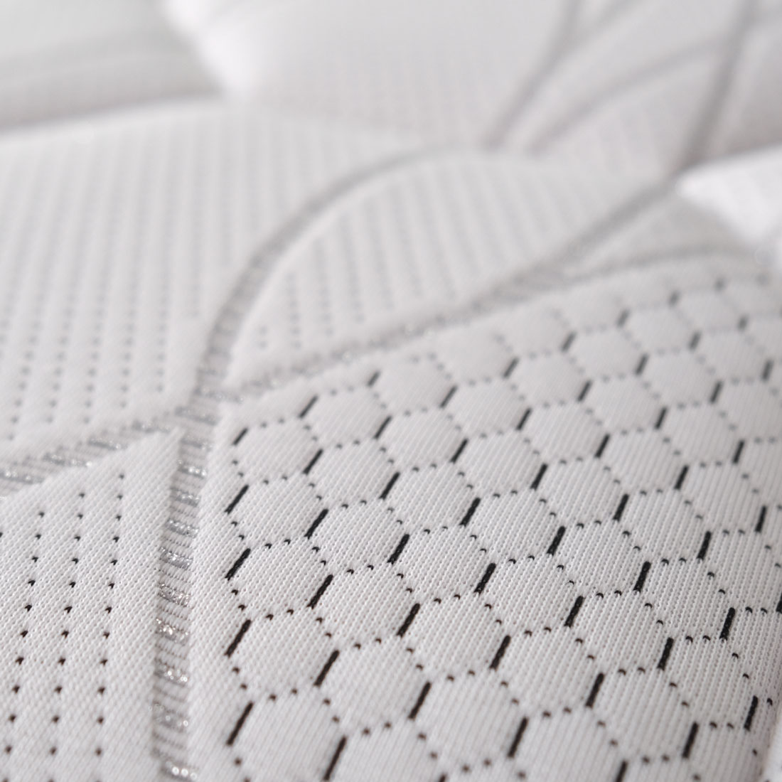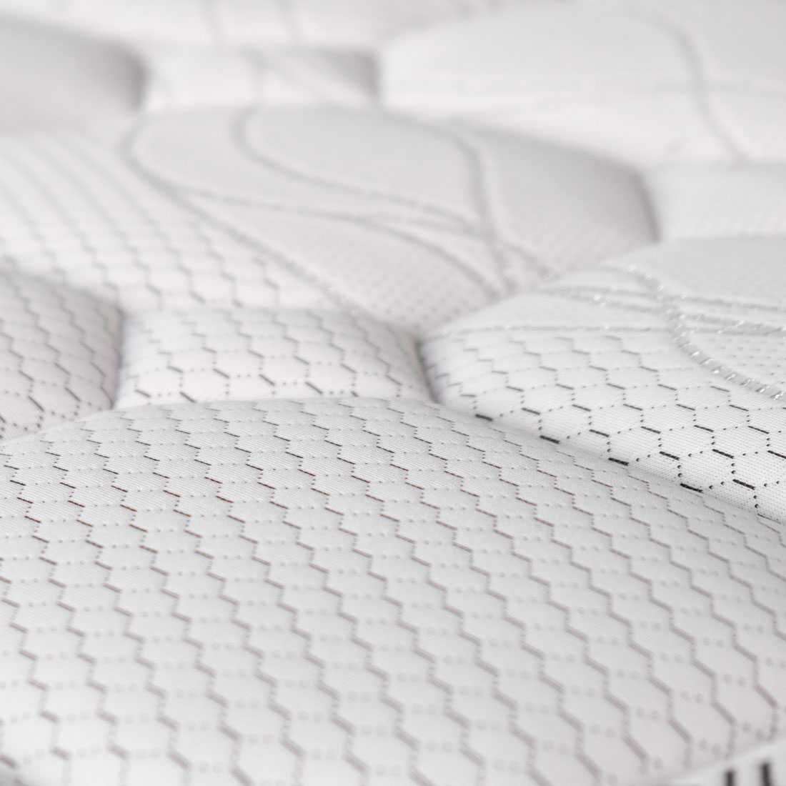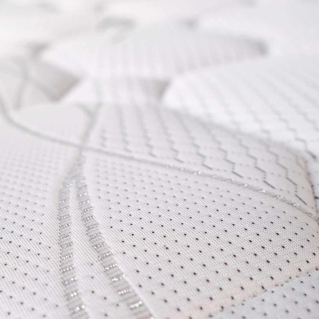 Il tessuto del rivestimento esterno del materasso memory a molle insacchettate Ibrido è anallergico, traspirante e antiacaro.