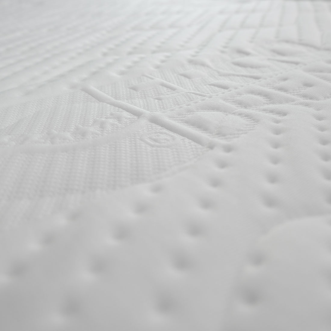 Tessuto pregiato in cotone damascato e fascia traspirante. è 100% made in Italy, anallergico, antiacaro e antibatterico.