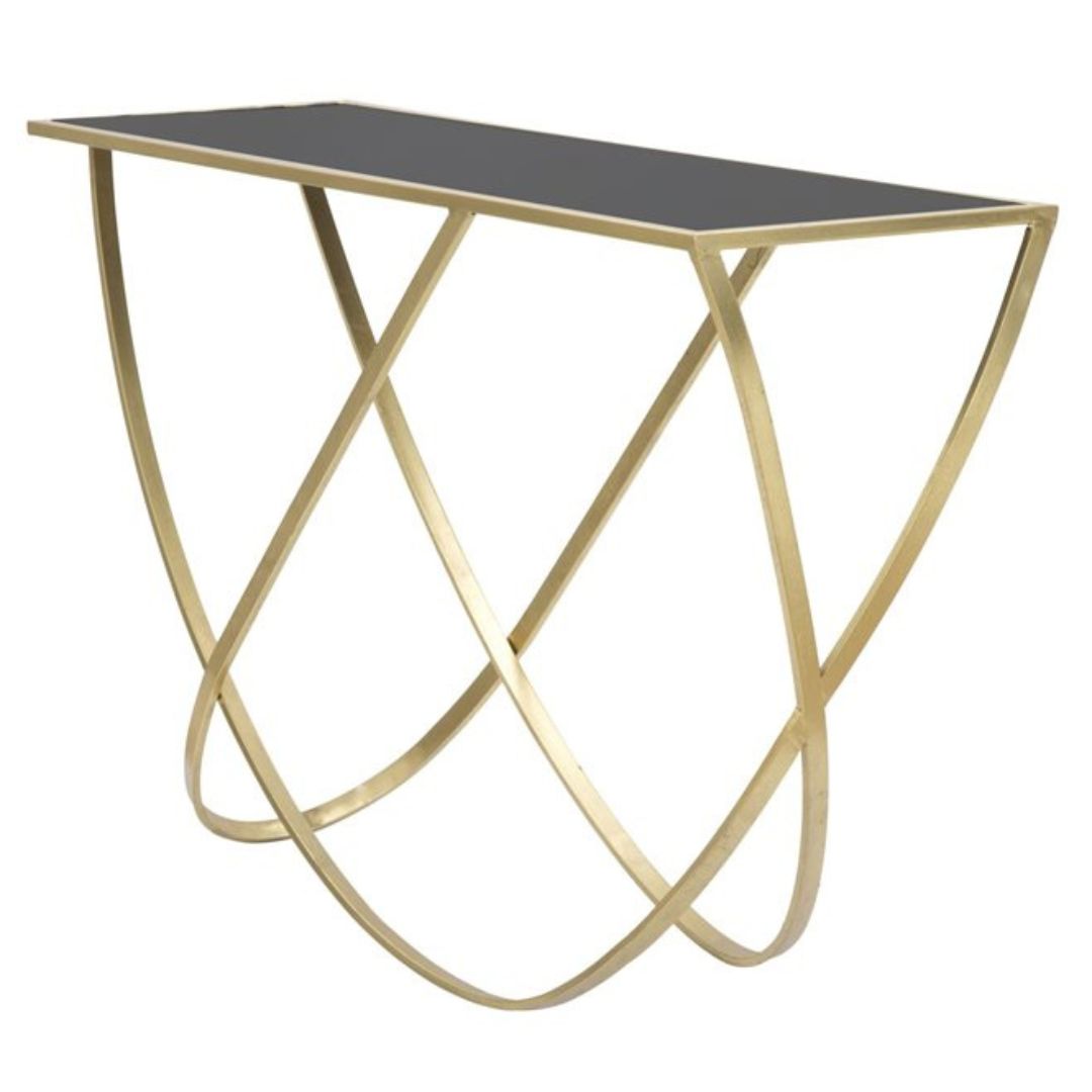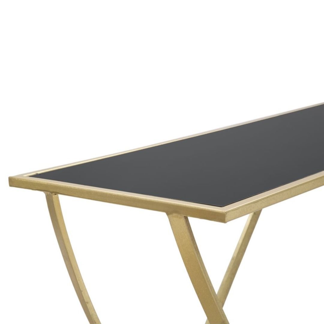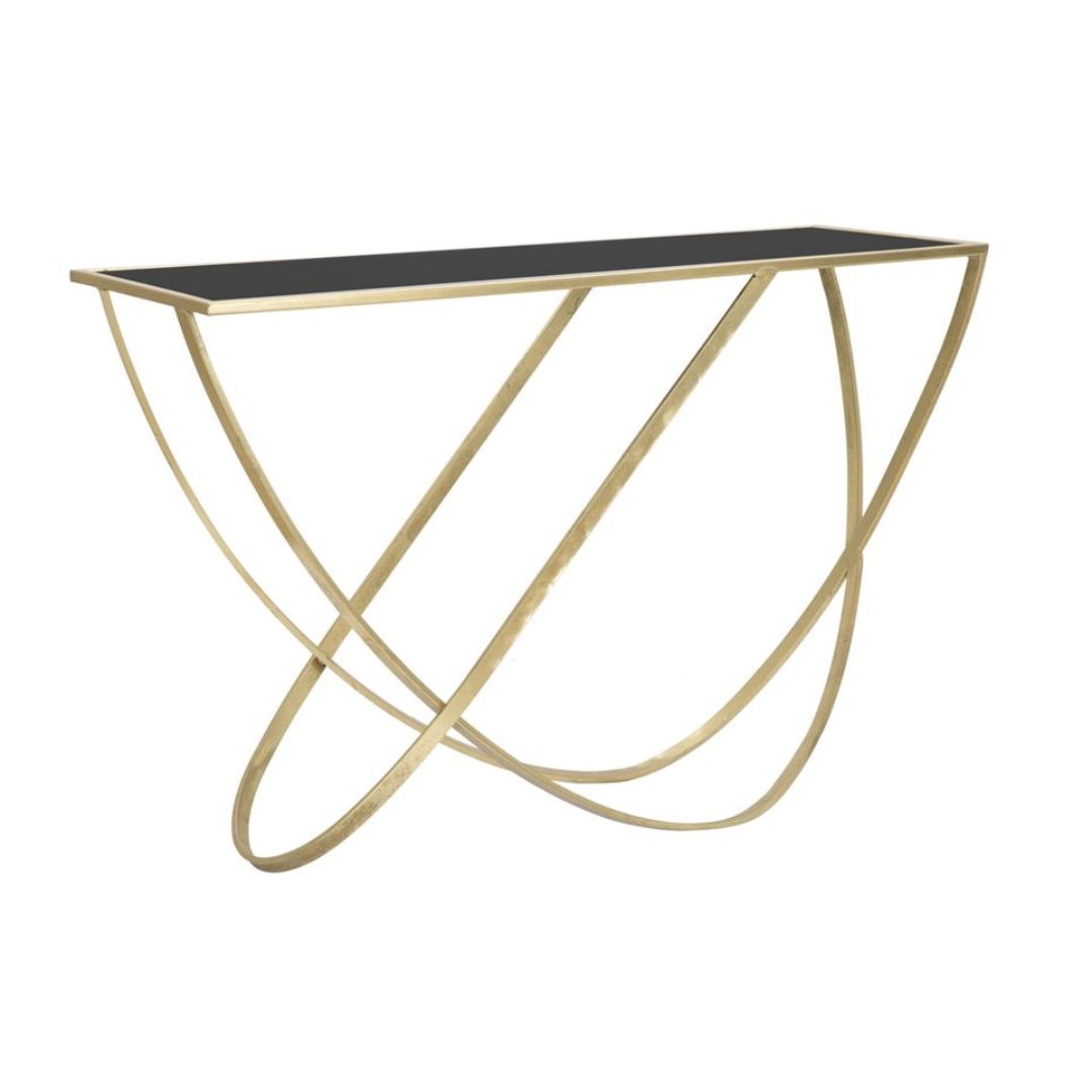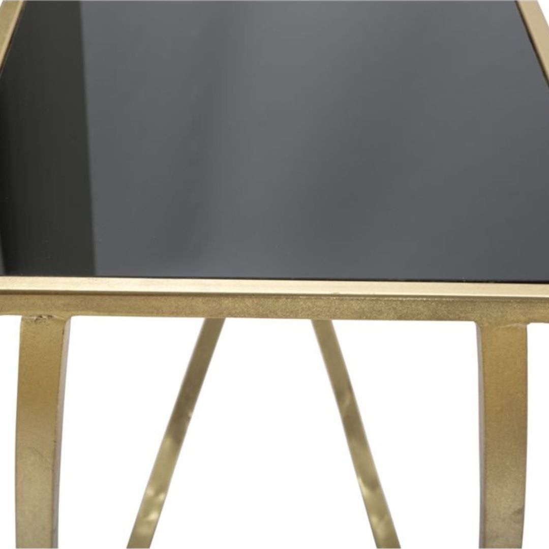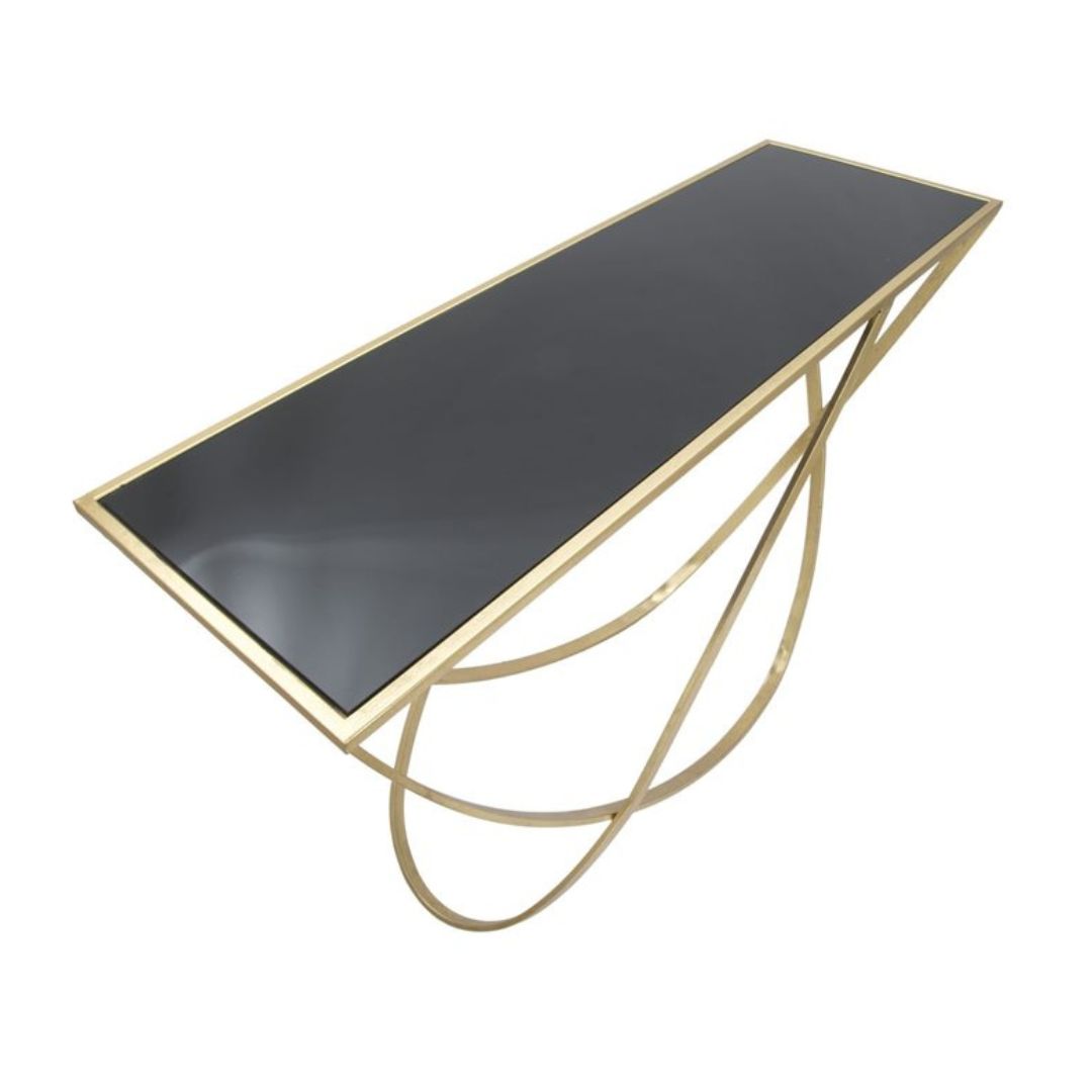Il piano superiore è totalmente fatto in vetro di colore nero molto elegante, incorniciato dalla struttura in ferro in oro, il mix di questi colori rende il design di questo complemento molto accattivante e perfetto per ogni spazio.