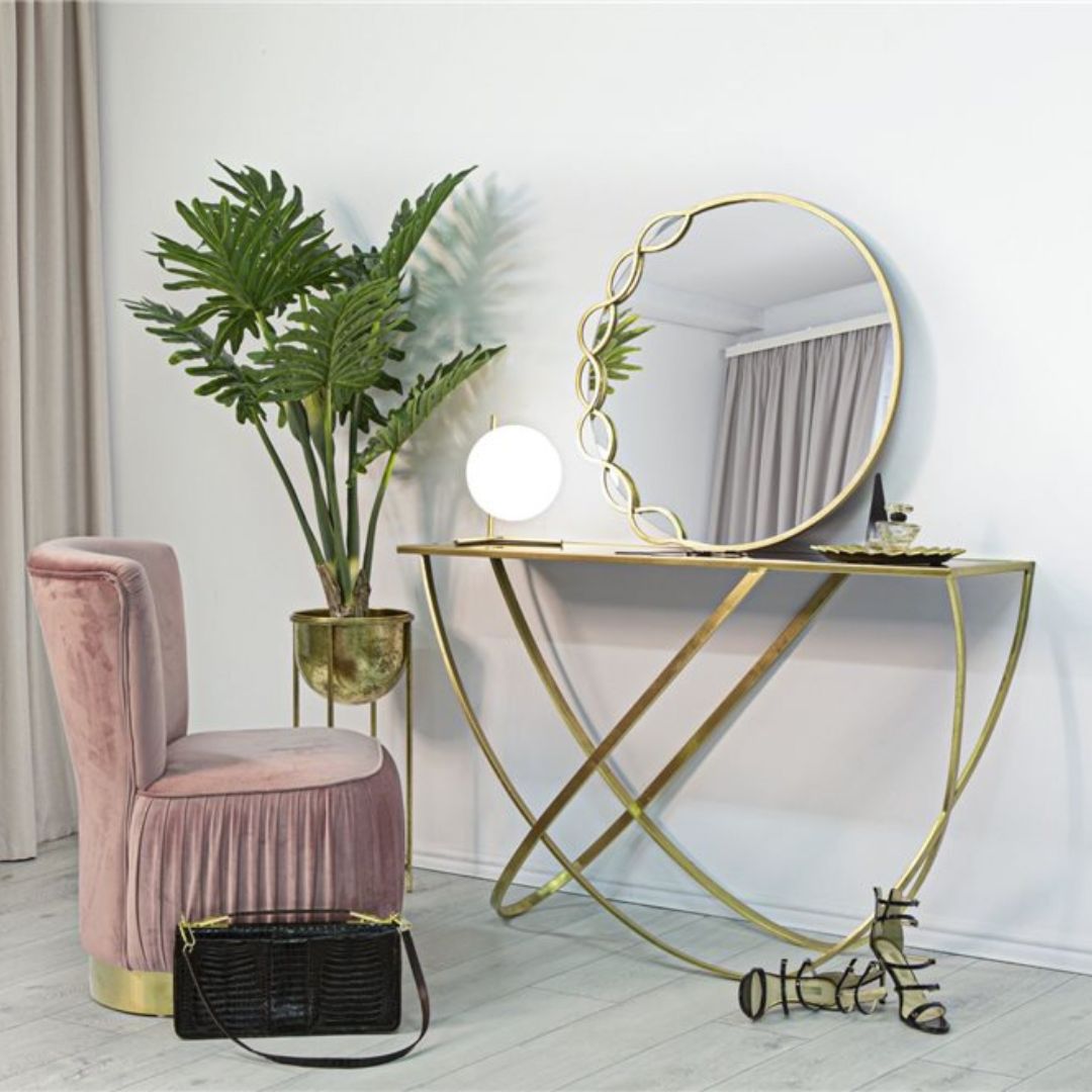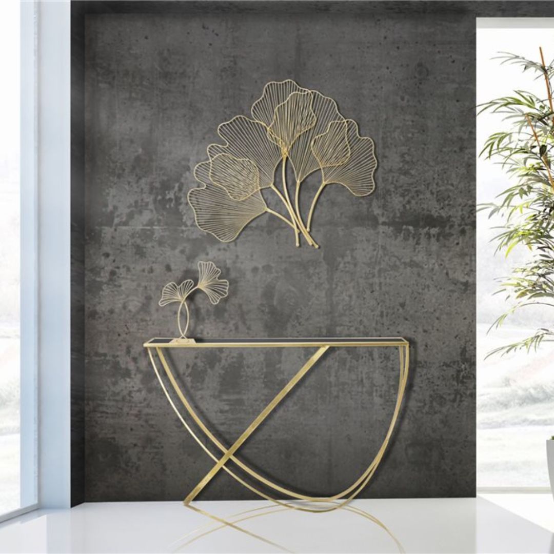 Il Mobile Ingresso Ring è il complemento d'arredo ideale per chi desidera coniugare stile ed eleganza. Esso si contraddistingue con il suo design fatto con anelli intrecciati fatti in ferro e poi verniciati in oro.