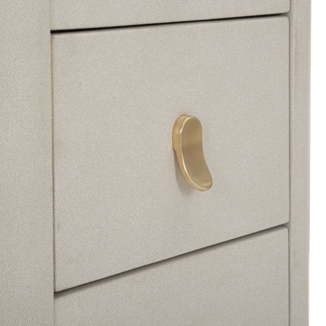 La Toletta Trucco marcata Mauro Ferretti colpisce non soltanto nell'eleganza, ma anche nella scelta dei materiali pregiati Made in Italy, come il legno di pino, materiale primario utilizzato per realizzare la maggior parte di questo complemento d'arredo unico. Il color crema si sposa perfettamente con le rifiniture dorate utilizzate per la gamba in stile minimal e le maniglie dei cassetti. Il top della toletta da trucco è realizzato in materiale simil marmo che dona raffinatezza all'intera struttura senza esagerare, mantenendo una colorazione neutra per tutto il complemento.
