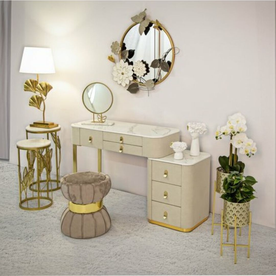 Inoltre investire in una toeletta trucco significa aggiungere un elemento di lusso e funzionalità alla tua camera da letto. Grazie ai materiali di alta qualità , al design elegante e ai dettagli dorati, questa toeletta è destinata a diventare il pezzo forte della tua stanza, offrendo un'esperienza di bellezza quotidiana indimenticabile.